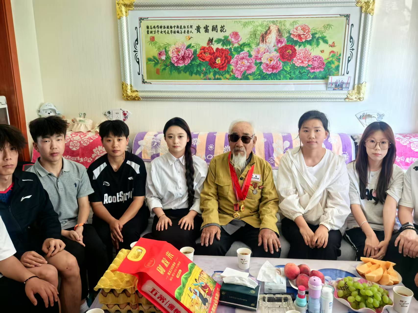 現(xiàn)居住于康寧新村八組、已93歲高齡的張克錄爺爺是參加過抗美援朝的退役老英雄。9月25日,堅持駐村4年的靳東生老師與學?!八{天愛心協(xié)會”指導(dǎo)教師、青年大學生,帶著學校的牽掛、問候與崇敬,一起到張克錄爺爺家中,為老人送上關(guān)愛祝福,開展了一場“聆聽英雄故事、傳承紅色基因”的特別走訪、慰問活動。張克錄爺爺精神矍鑠,身著掛有勛章的志愿軍軍裝,向師生們講述當年志愿軍戰(zhàn)士冒著凜冽寒風跨過鴨綠江,爬冰臥雪英勇戰(zhàn)斗的生動事跡;驚心動魄的戰(zhàn)斗故事,在老人樸實無華的語言中顯得格外感人,在場師生仿佛穿越時空,親眼目睹了志愿軍戰(zhàn)士們用血肉之軀筑起的鋼鐵長城;說到動情處,老人和師生們的眼眶已經(jīng)濕潤,師生心靈受到了深刻洗禮、愛國情懷得到了高度升華。