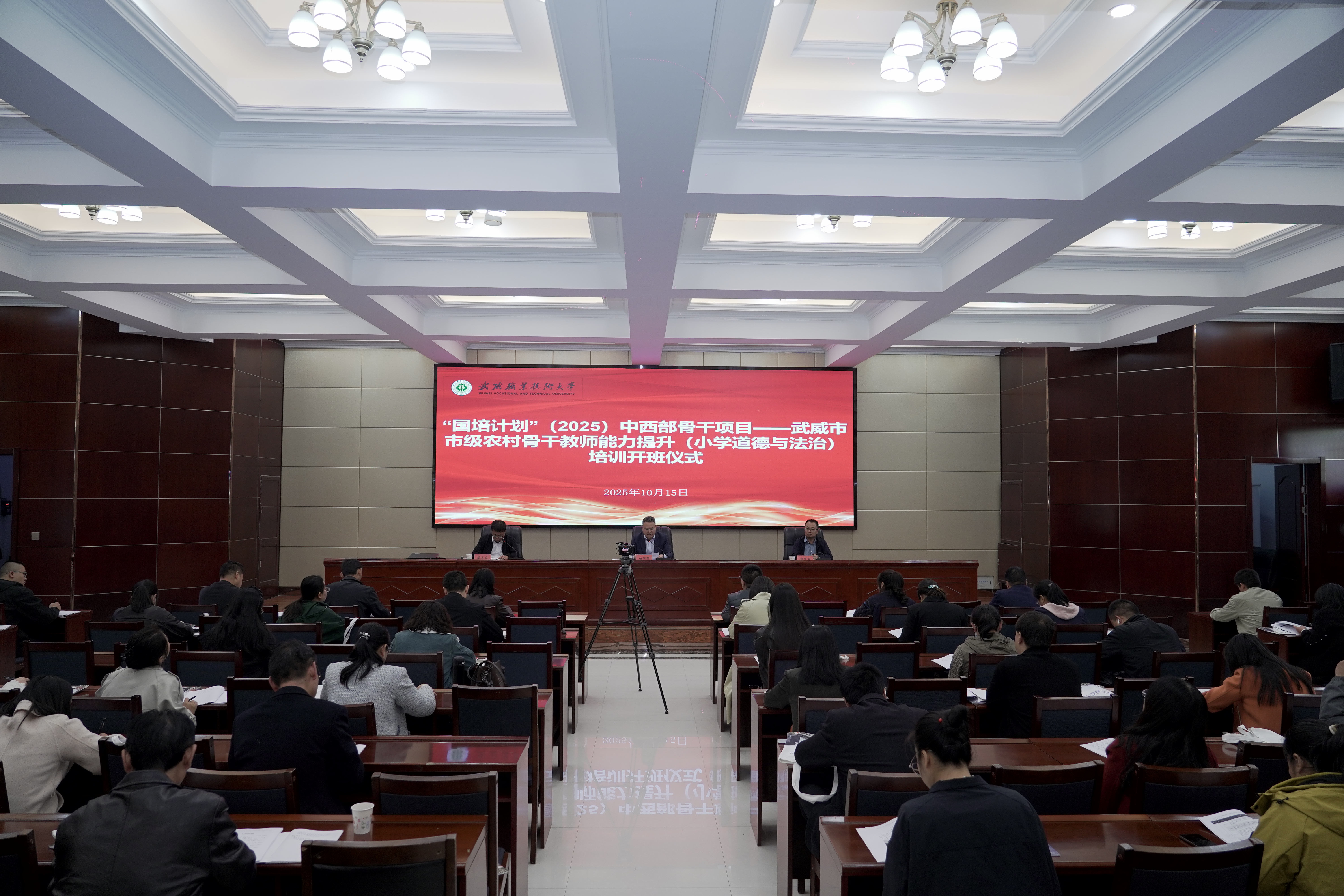 10月15日,由武威市教育局主辦、武威職業(yè)技術(shù)大學(xué)承辦的“國(guó)培計(jì)劃”(2025)中西部骨干項(xiàng)目——武威市市級(jí)農(nóng)村骨干教師能力提升(小學(xué)道德與法治)培訓(xùn)班在學(xué)校行樹(shù)樓北側(cè)報(bào)告廳正式開(kāi)班。學(xué)校黨委委員、副校長(zhǎng)伍國(guó)強(qiáng)出席開(kāi)班儀式。培訓(xùn)組織管理工作人員及60名參訓(xùn)骨干教師共同參加。開(kāi)班儀式由學(xué)校國(guó)際合作交流處副處長(zhǎng)蔡濟(jì)眾主持。