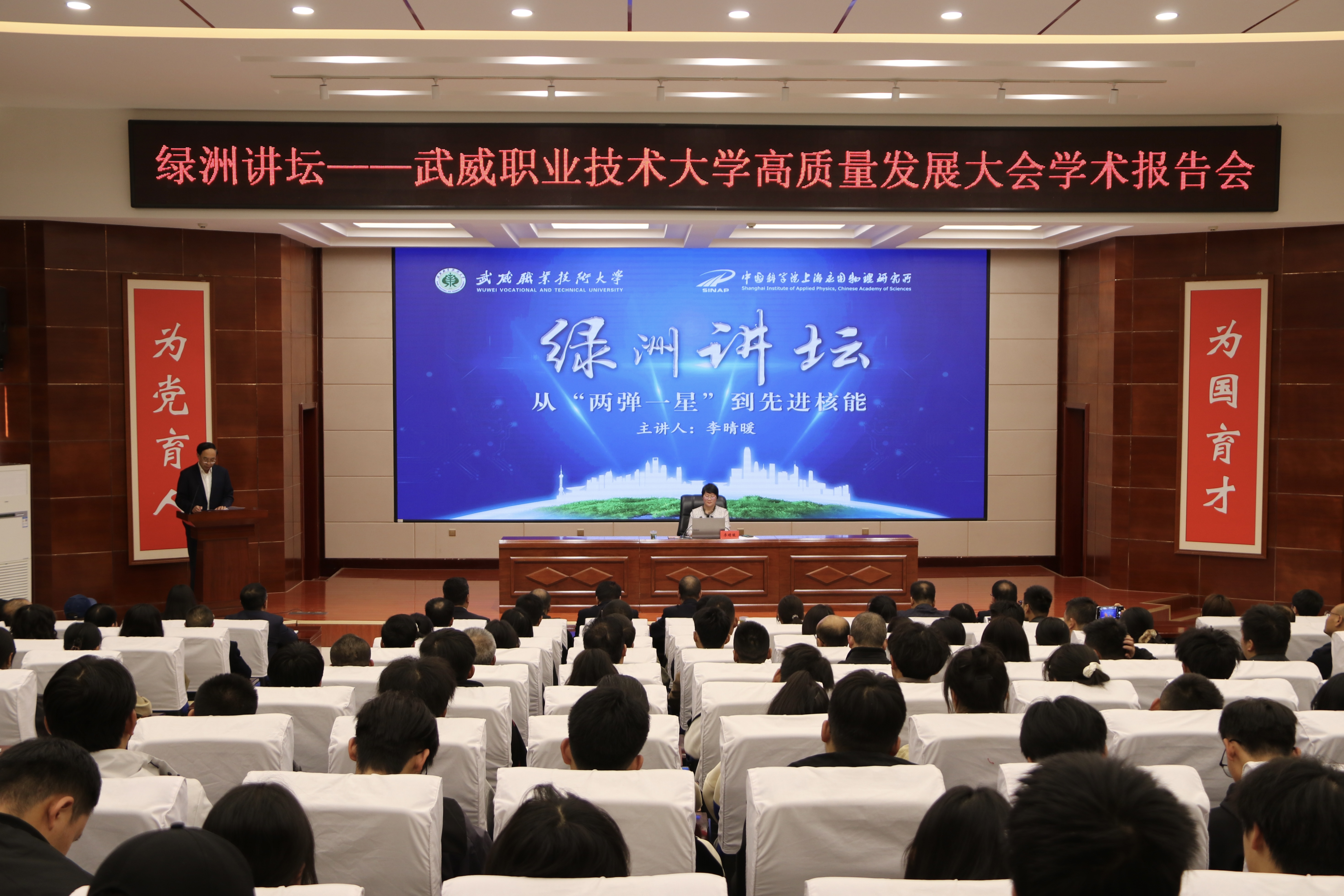 當(dāng)天上午,武威職業(yè)技術(shù)大學(xué)舉行揭牌儀式,標(biāo)志著學(xué)校正式邁入發(fā)展新階段。而學(xué)校的跨越式發(fā)展,離不開(kāi)上海應(yīng)用物理研究所的長(zhǎng)期支持。自2018年2月,甘肅省教育廳、武威市政府與上海應(yīng)用物理研究所簽訂《聯(lián)合辦學(xué)協(xié)議》,共建“中科低碳新能源技術(shù)學(xué)院”以來(lái),雙方開(kāi)創(chuàng)了中科院研究所與高職院校合作辦學(xué)先例,成為全國(guó)產(chǎn)教融合、科教融匯典范。在上海應(yīng)用物理研究所助力下,武威職業(yè)技術(shù)大學(xué)打造的 “綠洲講壇” 系列活動(dòng),圍繞政治、經(jīng)濟(jì)、文化、社會(huì)熱點(diǎn)等領(lǐng)域開(kāi)展學(xué)術(shù)講座,不僅拓展了師生視野,更營(yíng)造了優(yōu)良學(xué)術(shù)氛圍,成功獲評(píng)甘肅省職業(yè)院校特色文化品牌。