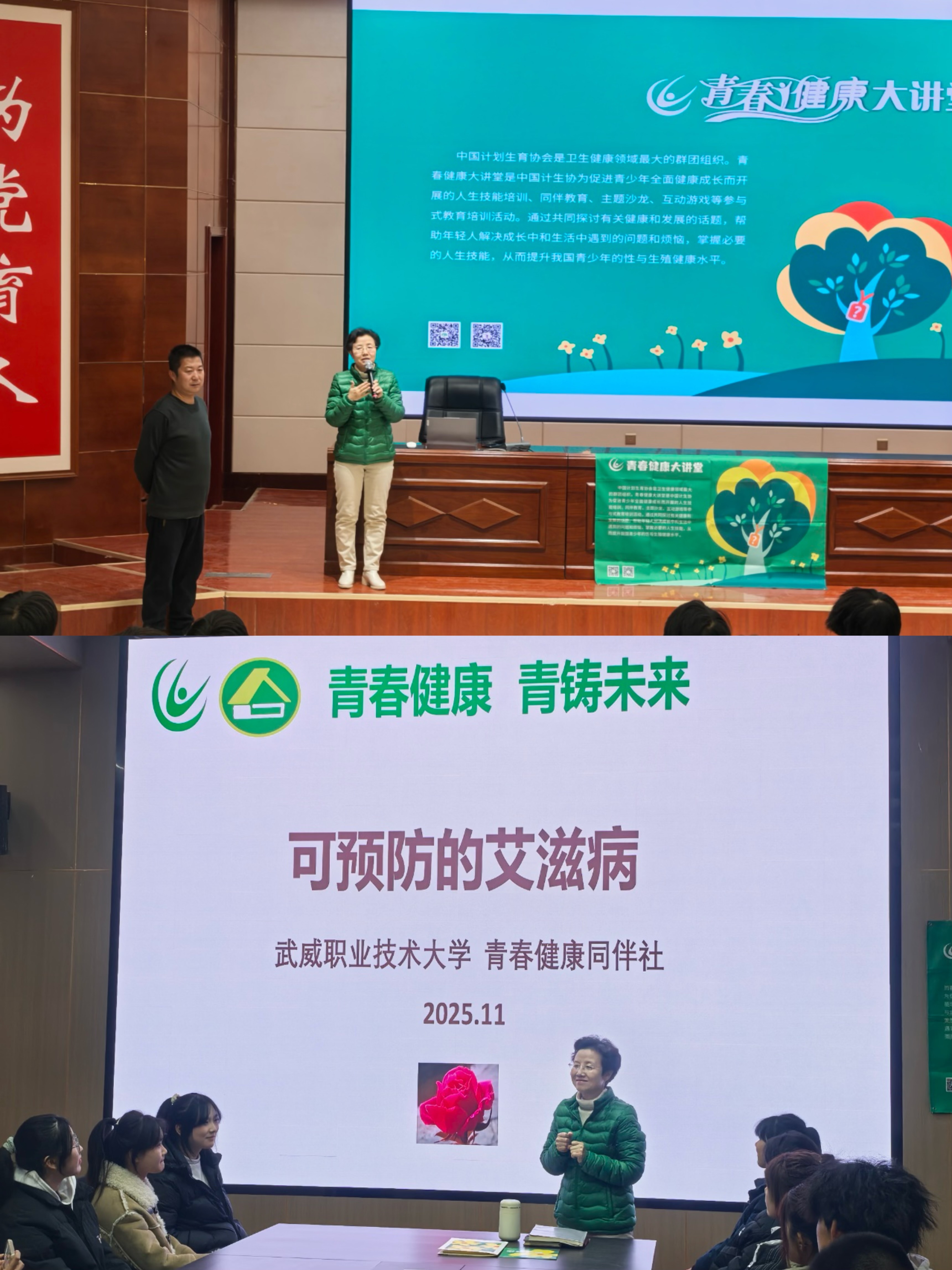當天的主題宣傳活動內容豐富,形式多樣。活動伊始,“知艾防艾”專題講座在菁英廳率先開講。講座特邀武威市疾病預防控制中心艾防科負責人王向尚與武威市人民醫(yī)院的皮膚科副主任醫(yī)師李杉擔任主講嘉賓。專家們結合一線工作實際經驗,用翔實的數據和鮮活的案例,生動講解了艾滋病的傳播途徑、預防措施、流行現狀以及反歧視理念,內容深入淺出,貼近學生實際,有效幫助大家樹立起正確的防艾觀念,消除對艾滋病感染者的誤解與恐懼。