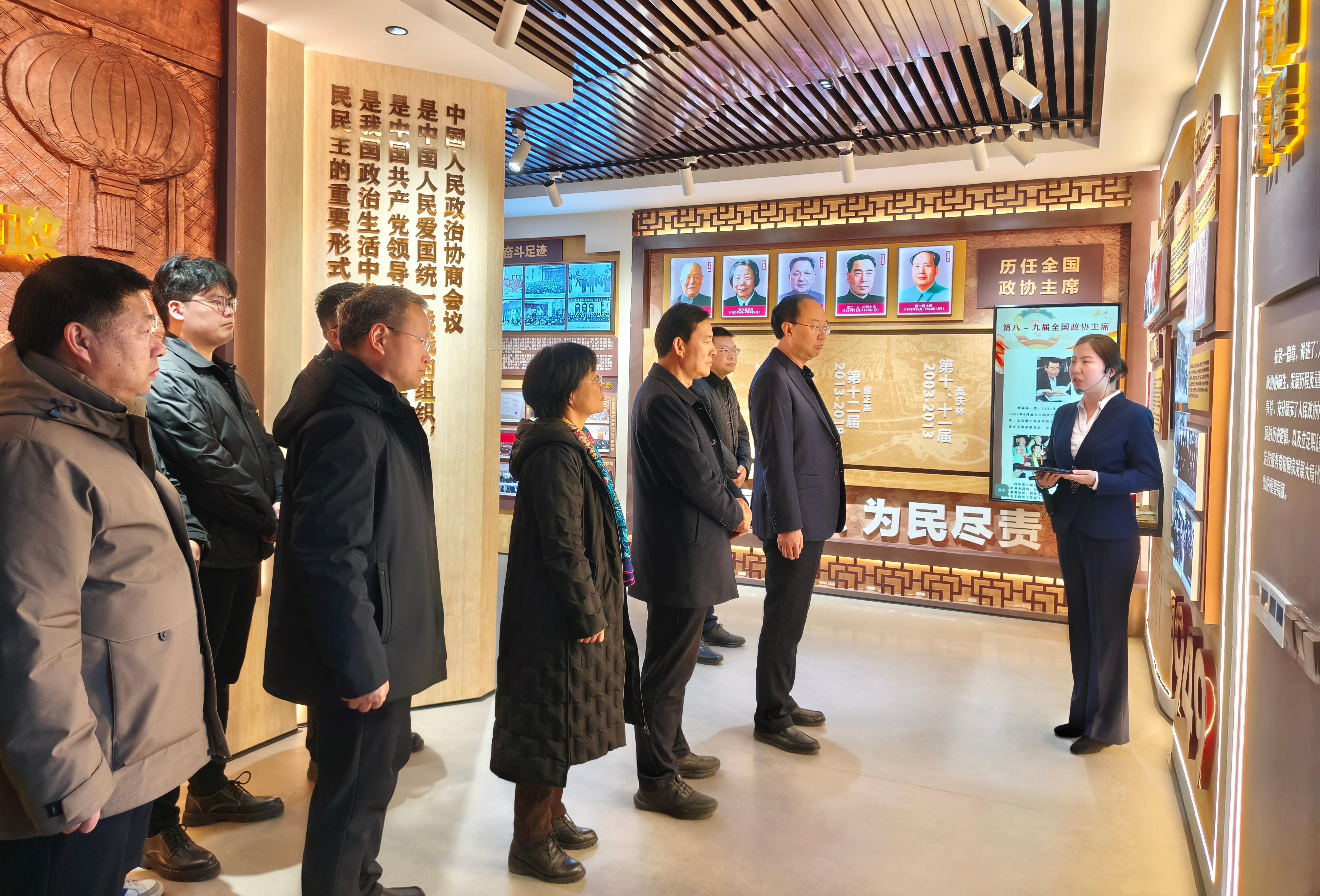 在講解員的引導(dǎo)下,大家依次參觀了政協(xié)發(fā)展成就展示廳、文史資料室等主要展區(qū),通過(guò)觀看珍貴的歷史文獻(xiàn)、詳實(shí)的檔案資料和生動(dòng)的圖片影像,系統(tǒng)回顧了人民政協(xié)在中國(guó)共產(chǎn)黨領(lǐng)導(dǎo)下走過(guò)的光輝歷程和積累的寶貴經(jīng)驗(yàn),深入了解了武威市政協(xié)在推進(jìn)政治協(xié)商、民主監(jiān)督、參政議政等方面的具體實(shí)踐與積極成效。參觀過(guò)程中,校領(lǐng)導(dǎo)還與市政協(xié)相關(guān)負(fù)責(zé)同志就文史館的規(guī)劃建設(shè)、展陳設(shè)計(jì)等工作進(jìn)行了深入交流。