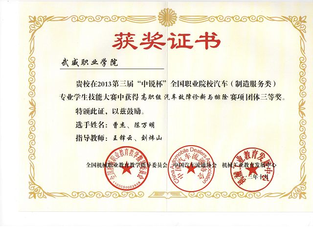 我院學(xué)生在第三屆“中銳杯”全國(guó)職業(yè)院校汽車專業(yè)學(xué)生技能大賽中獲獎(jiǎng)
