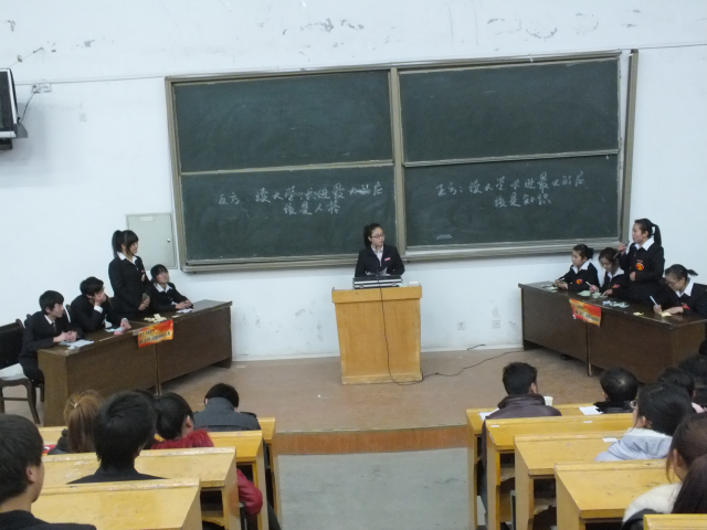 11月28日晚,我院第五屆大專辯論賽復(fù)賽第二場(chǎng)比賽在西階梯教室舉行。此次辯論賽,電信系作為正方以“讀大學(xué)生長(zhǎng)進(jìn)最大的是知識(shí)”為辯題,我系作為反方以“讀大學(xué)生長(zhǎng)進(jìn)最大的是人格”為辯題。雙方就此展開了激烈的辯論。