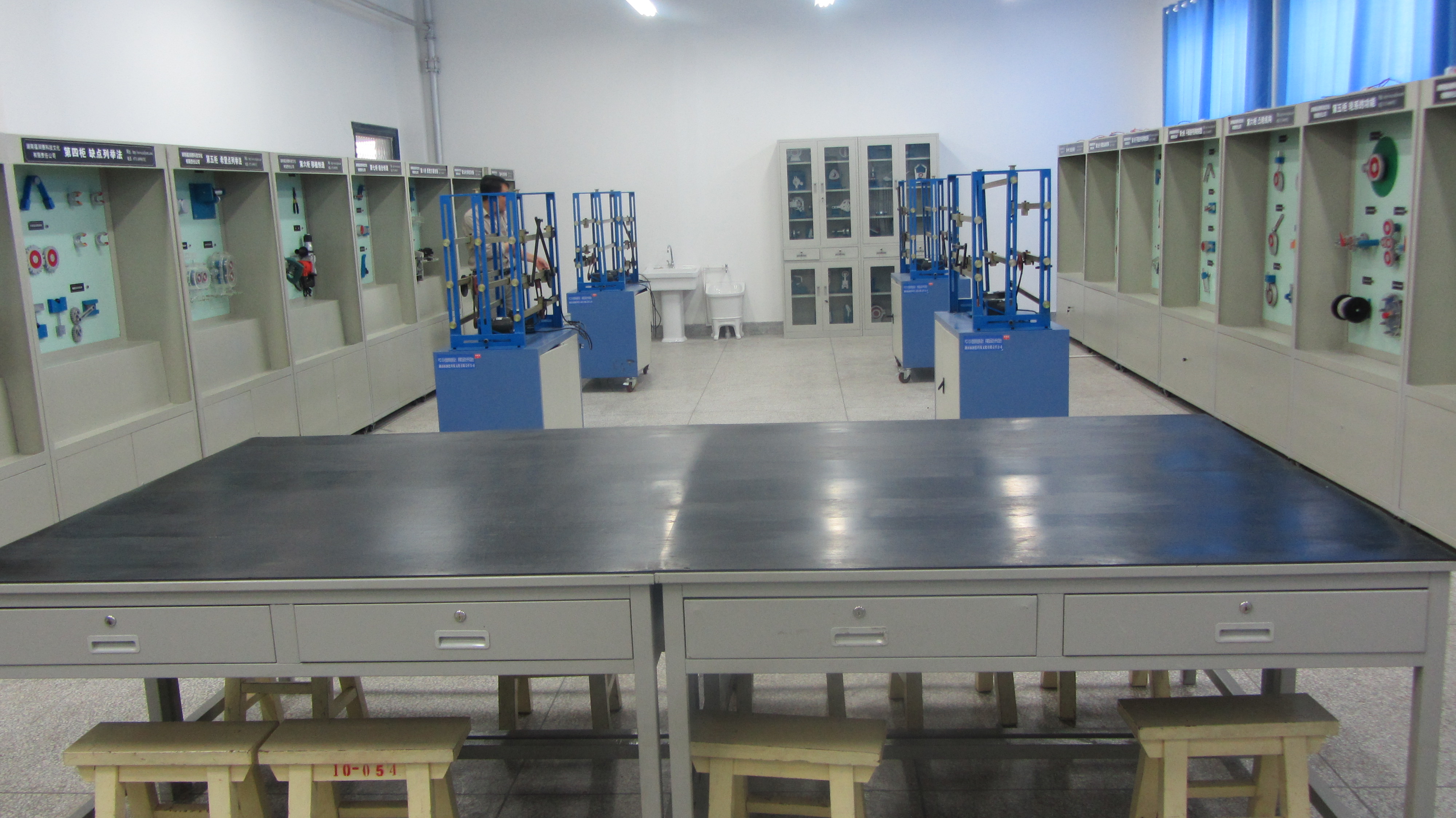 本實(shí)驗(yàn)室主要由10組成套“機(jī)械原理” 陳列柜、10組成套“機(jī)械創(chuàng)新設(shè)計(jì)”陳列柜、4臺(tái)平面機(jī)構(gòu)創(chuàng)意組合實(shí)驗(yàn)臺(tái)和35套機(jī)構(gòu)運(yùn)動(dòng)簡(jiǎn)圖測(cè)繪模型組成。設(shè)備造價(jià)近20多萬(wàn)元,實(shí)驗(yàn)室能完成機(jī)械類及近機(jī)械類專業(yè)本、??茖W(xué)生《機(jī)械設(shè)計(jì)基礎(chǔ)》、《機(jī)械原理》、《機(jī)械設(shè)計(jì)》課程16個(gè)實(shí)驗(yàn)項(xiàng)目。