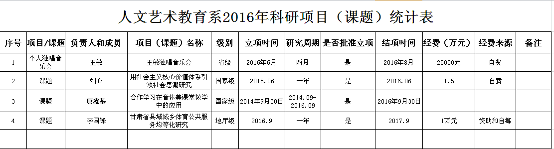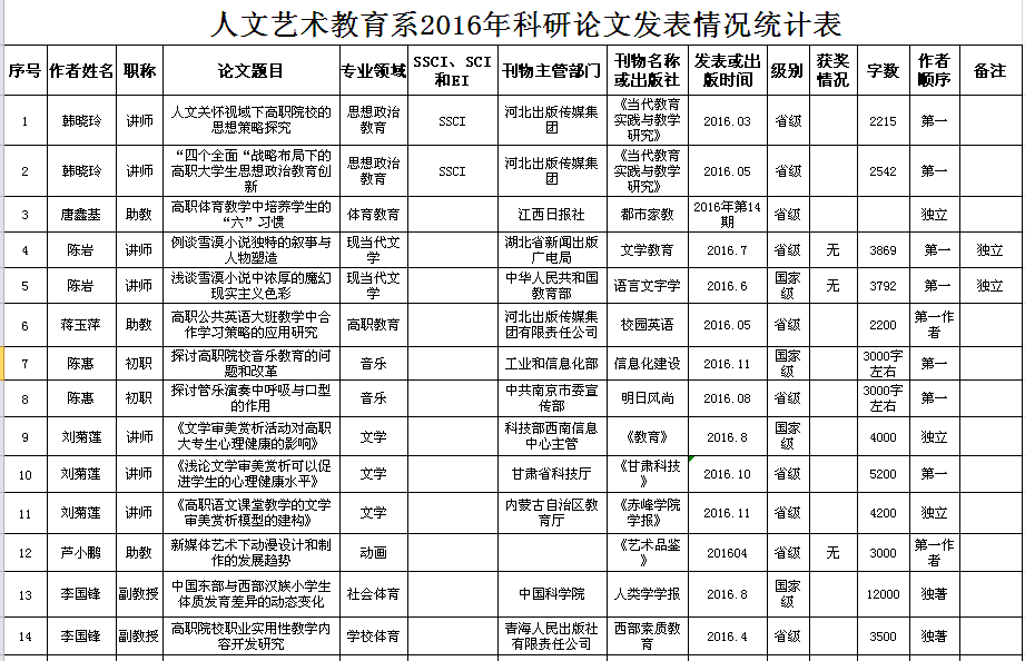 人文藝術教育系2016年科研成果統計