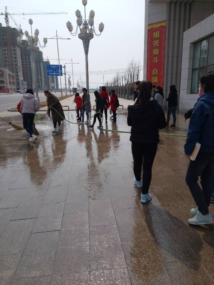 接學(xué)院學(xué)生工作處關(guān)于校園環(huán)境衛(wèi)生集中清理沖洗的通知,3月15日下午,人文藝術(shù)教育系積極響應(yīng),各班班主任跟班組織學(xué)生,具體指導(dǎo)學(xué)生正確清理沖洗了區(qū)域衛(wèi)生.徹底清理了所屬環(huán)境衛(wèi)生區(qū)域內(nèi)的草坪和樹溝里的垃圾.殘枝敗葉,對所屬環(huán)境衛(wèi)生區(qū)域內(nèi)的路面、地面、樓周圍、墻裙、一樓窗臺(tái)、樹木、垃圾箱、果皮箱、宣傳欄等設(shè)施設(shè)備進(jìn)行了全面徹底沖洗。