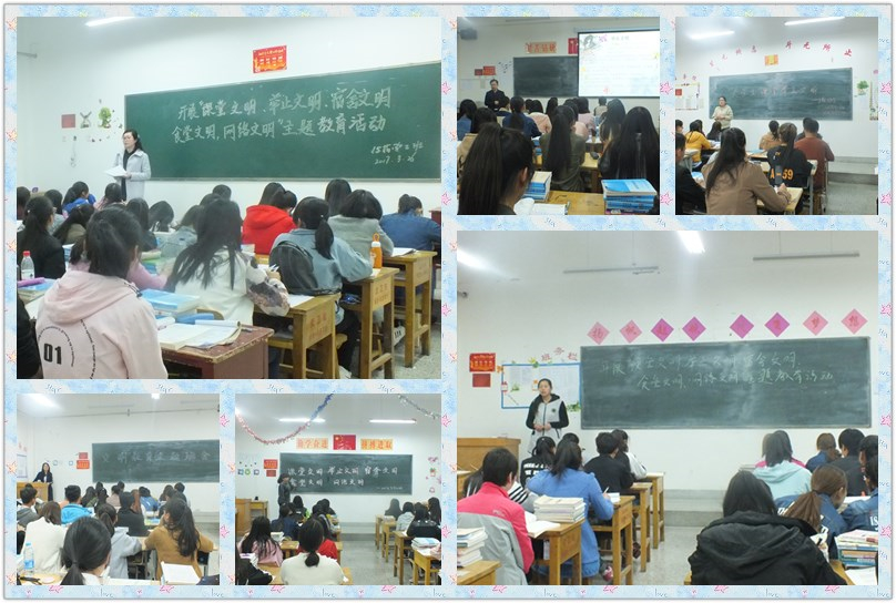 各班班會從什么是文明講起,聯(lián)系生活實際,講述校園文明、家庭文明和社會文明的重要性。各班主任首先向同學們闡述了對于當代大學生來說,文明修身和專業(yè)學習同等重要,專業(yè)學習主要培養(yǎng)大學生的科學精神,而文明修身主要培養(yǎng)大學生的人文精神,二者缺一不可。通過講述身邊同學的故事,指出校園、家庭和社會上存在的不文明、不和諧現(xiàn)象,要求同學們對自身言行舉止進行約束,共同攜手,提高自身文明行為,提升大家的思想道德和人文素質(zhì)。隨后,由同學們就“文明行為”發(fā)表了自己的看法,大家由主題聯(lián)想到自己身邊的一些不文明的行為,并就這些不文明行為發(fā)表了自己觀點,同時,同學們就如何提高自身道德素養(yǎng)、如何更好地做到文明修身提出了自己的建議和意見。經(jīng)過同學們的積極發(fā)言和認真討論,大家認為只有文明的個人才會有文明的班級團體,才會有文明的校園,才會有和諧的社會。