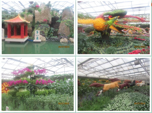 蔬菜園藝廳為優(yōu)秀蔬菜景觀的集中營,五顏六色的種子、蔬菜、花卉及其他普通材料,在園藝師的手中演繹成氣勢恢弘、雄偉壯觀、形神兼?zhèn)?、意趣天成的藝術(shù)精品。其中主景點“美麗中國”將大明湖牌坊、蓬萊閣、五岳獨尊、孔子雕像、象鼻山、黃果樹瀑布、云岡石窟、嘉峪關(guān)、長白山瀑 布……30余個國內(nèi)知名人文及自然景點穿插其中。整個景點從遠(yuǎn)處看去,把祖國的大好河山、現(xiàn)代科技和鮮活蔬菜有機融為一體,凸顯著“綠色·科技·未來”的主題。