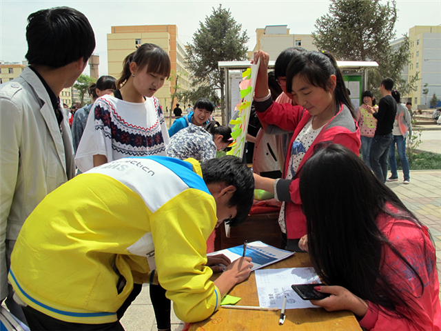 我系青年志愿者在校園設立了固定宣傳位,設計制作了展板,開展了“讓我們一起光盤吧”簽字征集活動,并在食堂餐桌上張貼光盤行動的小便簽,與前來就餐的同學互動。此外,志愿者還利用網(wǎng)絡社交平臺、微博、微信等新媒體進行宣傳,深化了青年志愿者精神、踐行了文明新風、收到了良好的效果,。