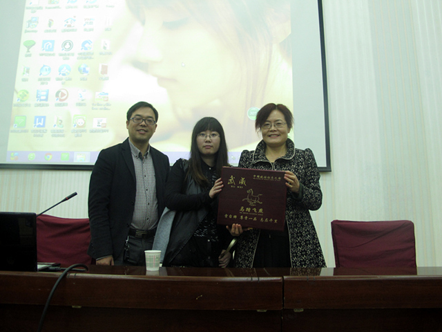 演講結(jié)束后,農(nóng)業(yè)經(jīng)濟(jì)系主任晏素珍、黨總支負(fù)責(zé)人蔡飛向殷繡嬌女士贈(zèng)送了中國旅游標(biāo)志銅奔馬模型。