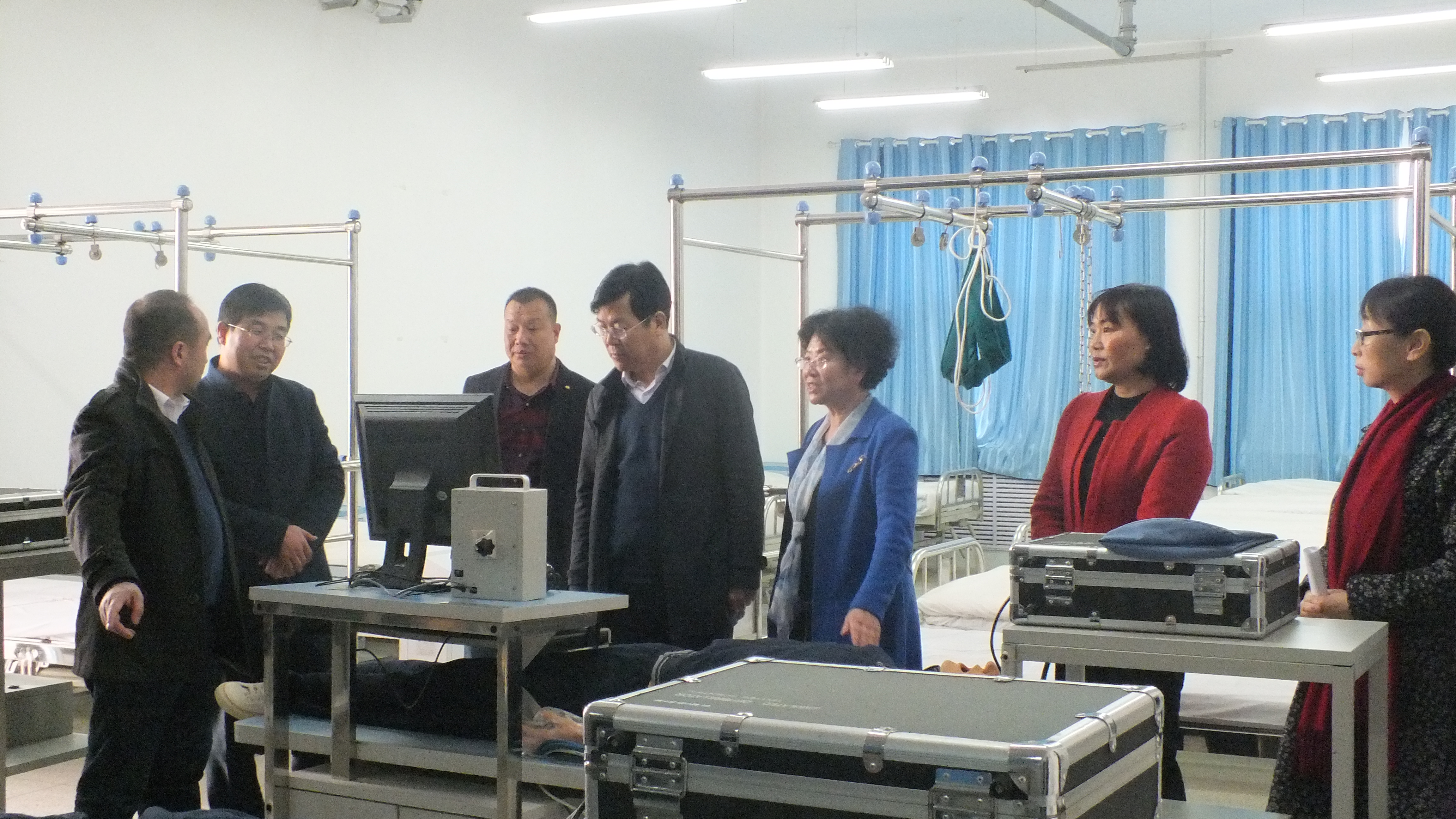 毛校長一行參觀了護(hù)理系的生命科技館、機(jī)能實(shí)訓(xùn)室、基護(hù)實(shí)訓(xùn)室、內(nèi)外科實(shí)訓(xùn)室等醫(yī)學(xué)類實(shí)訓(xùn)室,詳細(xì)了解了實(shí)驗設(shè)備的運(yùn)行情況和實(shí)驗實(shí)訓(xùn)課程的教學(xué)管理模式。潘玉華向來賓們介紹了學(xué)院申辦臨床醫(yī)學(xué)專業(yè)的進(jìn)展,以及我院實(shí)訓(xùn)課程建設(shè)和籌建實(shí)驗實(shí)訓(xùn)室取得的成果。