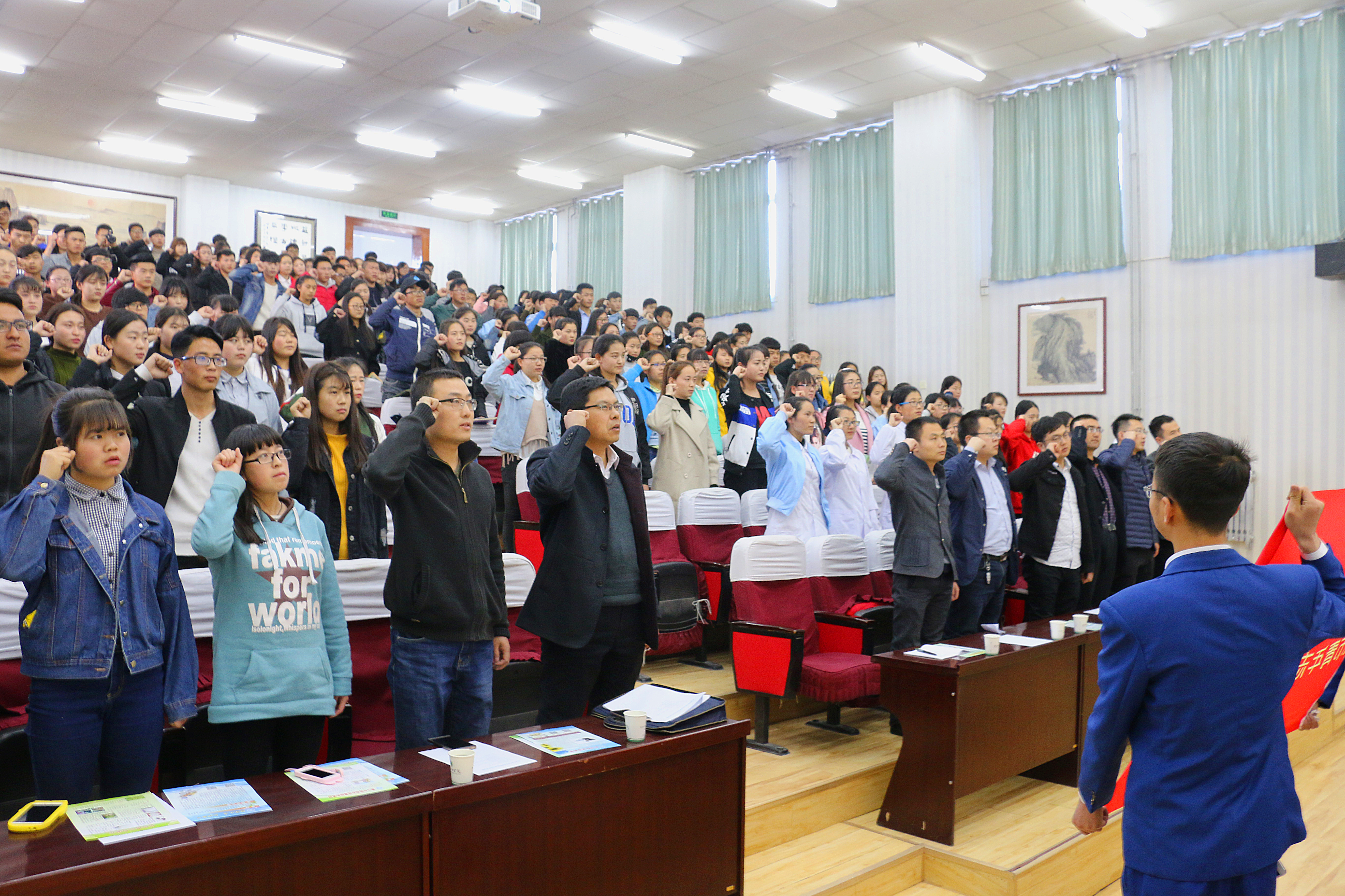活動(dòng)期間,參會(huì)人員觀看了禁毒宣傳微電影《青春的癮子》,學(xué)生代表上臺(tái)宣讀了《禁毒倡議書》,倡議全校師生積極行動(dòng)起來(lái),從自身做,珍愛(ài)生命,遠(yuǎn)離毒品,積極投身禁毒行動(dòng)。最后,參加活動(dòng)的全體師生起立莊嚴(yán)宣誓加入青年志愿者隊(duì)伍,承諾踐行志愿精神,傳播先進(jìn)文化,參與禁毒宣傳斗爭(zhēng),引導(dǎo)更多同學(xué)參與到禁毒的活動(dòng)中,為建設(shè)“無(wú)毒校園”、構(gòu)建和諧社會(huì)發(fā)揮應(yīng)有的作用。