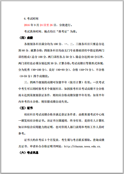 6.請各教學(xué)系將《甘肅省2016下半年全國計算機等級考試公告》等信息傳達(dá)到每個考生。