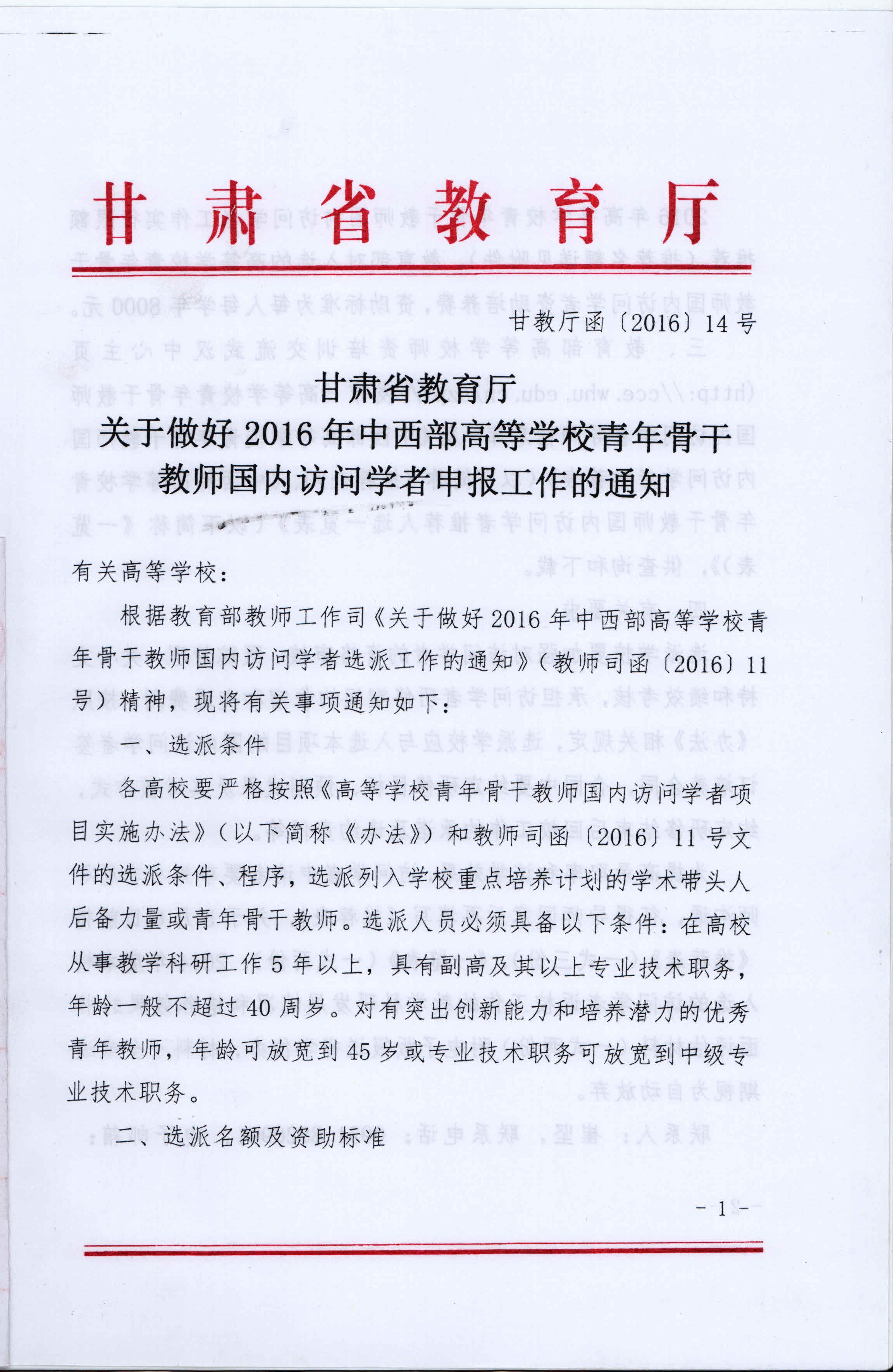 關(guān)于做好2016年青年骨干教師國內(nèi)訪問學者申報工作的通知