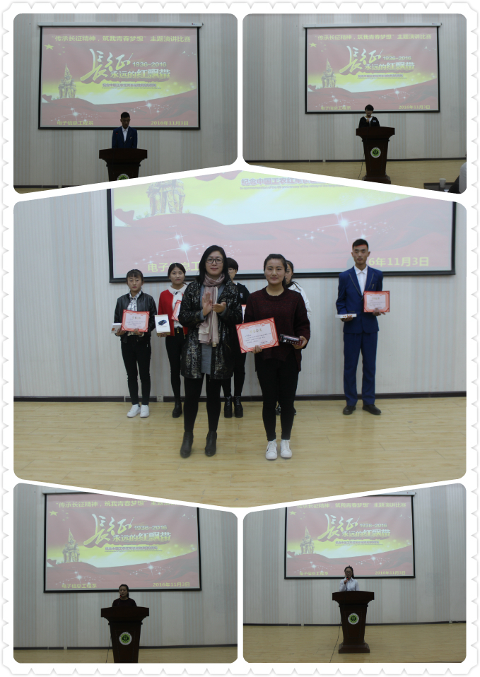為貫徹習(xí)近平總書記在“紅軍長征勝利80周年大會”上發(fā)表“不忘初心、繼續(xù)前進,走好新的長征路”的重要講話,激發(fā)師生弘揚偉大的長征精神,電子信息工程系于11月3日在正德廳舉辦了 “傳承長征精神,筑我青春夢想”主題演講比賽。電子信息工程系主任李亞梅及各位班主任擔任本次比賽評委,2016級全體學(xué)生觀看了比賽。