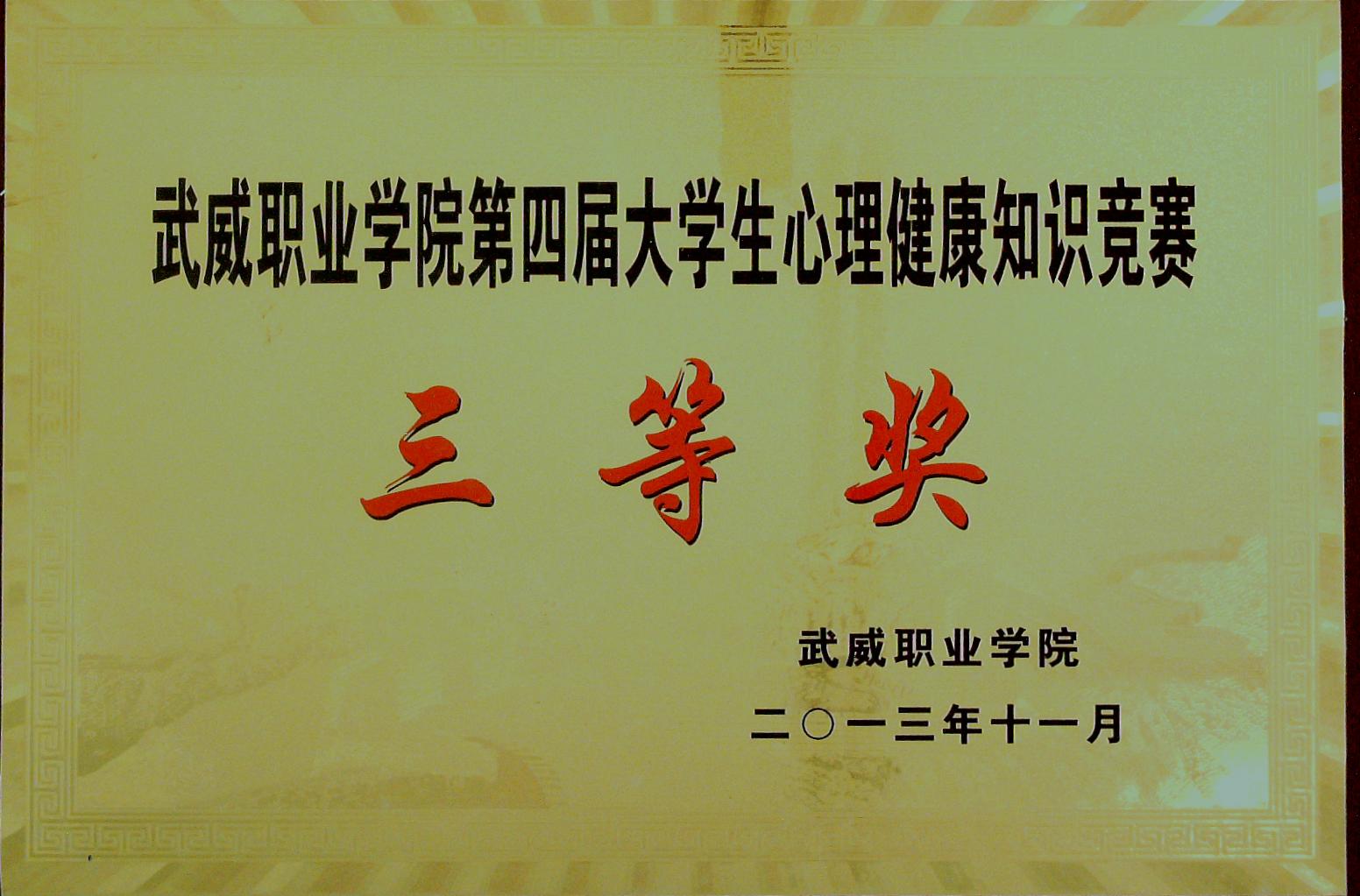 第四屆大學(xué)生心理健康知識(shí)競(jìng)賽三等獎(jiǎng)