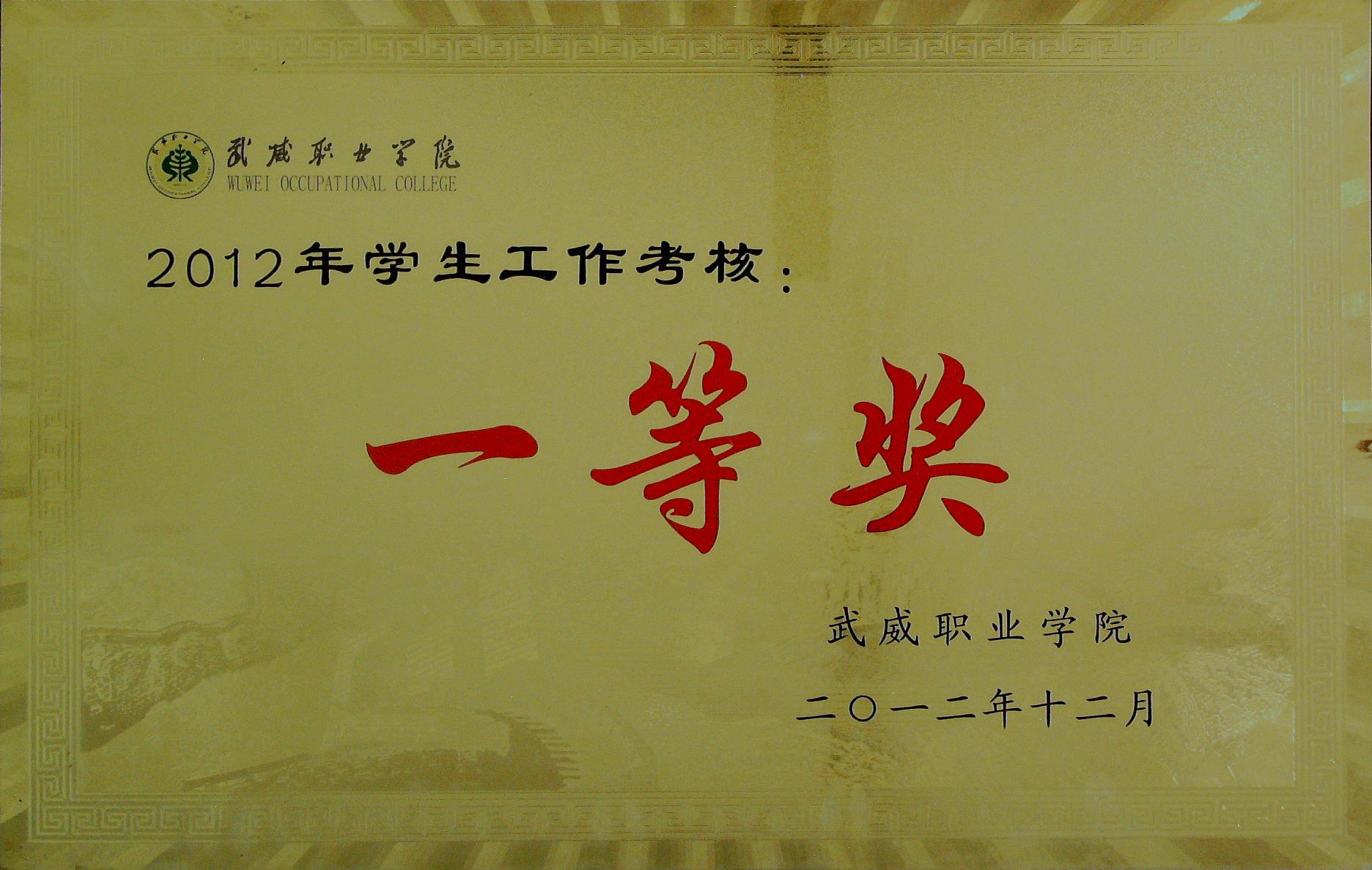 2012年學(xué)生工作考核一等獎
