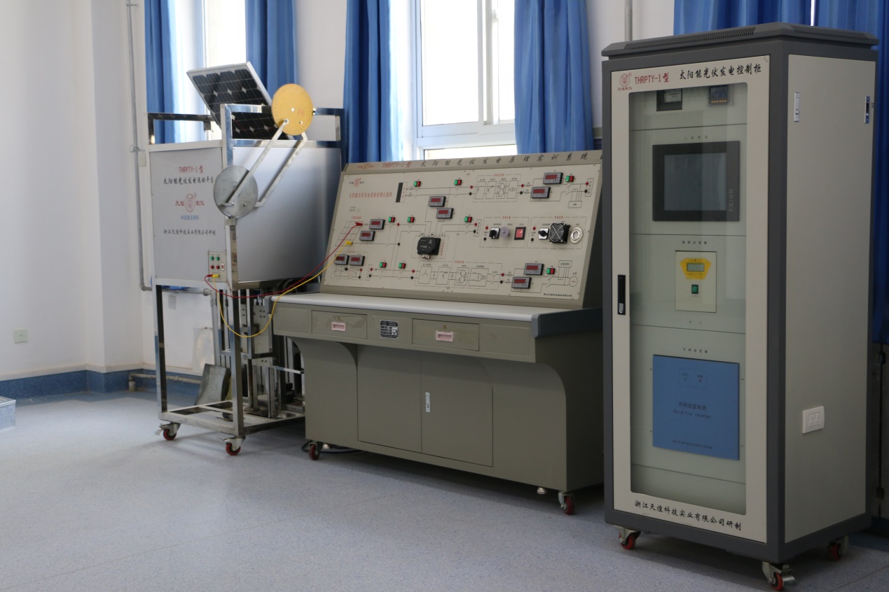 實訓功能:本實訓室擁有金相教學顯微鏡、X射線晶體定向儀、電池特性測試儀、太陽光伏材料電阻特性測量實驗裝置、太陽輻射電流表、總輻射表、經(jīng)濟性純水器等設(shè)備共31臺(套)。主要服務課程為光伏發(fā)電技術(shù)分析與應用、光伏控制器拆裝與維修等。
