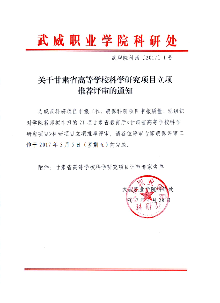 關于甘肅省高等學??茖W研究項目立項推薦評審的通知