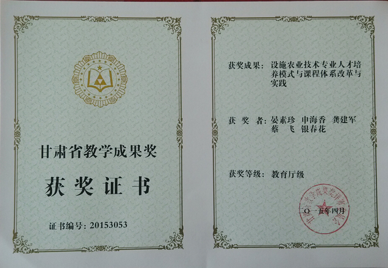 2015年甘肅省教學(xué)成果獎(jiǎng):設(shè)施農(nóng)業(yè)技術(shù)專業(yè)人才培養(yǎng)模式與課程體系改革與實(shí)踐