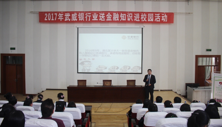 為幫助同學們了解和掌握銀行業(yè)消費常識,增強科學合理使用銀行產(chǎn)品和服務(wù)的能力,提升同學們對金融業(yè)務(wù)的風險防范和識別能力,5月11日下午,經(jīng)濟管理系與甘肅銀行武威分行、郵政儲蓄銀行武威市分行在學院正德廳聯(lián)合開展了“銀行業(yè)送金融知識進校園”宣講活動。經(jīng)濟管理系會計電算化、證券與期貨專業(yè)的350余名同學參加了此次宣講會。