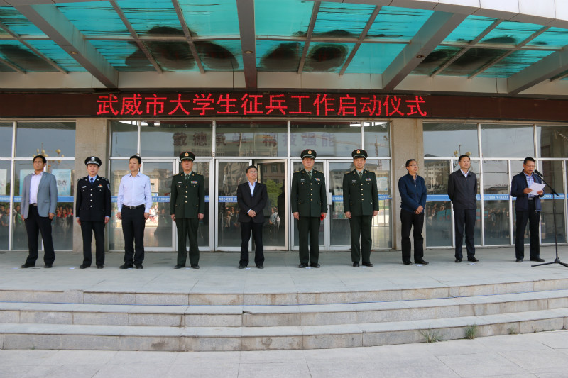 5月15日下午,武威市大學(xué)生征兵工作啟動儀式在學(xué)院尚德樓北廣場隆重舉行。武威市政府副市長胡細(xì)如和武威軍分區(qū)司令員萬發(fā)中出席啟動儀式并做了講話,武威軍分區(qū)政委周小平、參謀長孫武奇,市委宣傳部副部長陳萬能,涼州區(qū)委常委、常務(wù)副區(qū)長高加志,市教育局督學(xué)張應(yīng)偉、市民政局雙擁辦副主任楊光鈺、市公安局副調(diào)研員陳振亞出席啟動儀式。武威日報社、廣播電視臺的媒體朋友和我院1000多名師生代表參加啟動儀式,學(xué)院副院長王永緒主持啟動儀式。