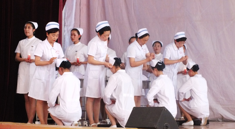 為繼承和弘揚(yáng)南丁格爾精神,積極推動(dòng)護(hù)理專(zhuān)業(yè)人才建設(shè)和職業(yè)內(nèi)涵塑造,展示我院護(hù)理專(zhuān)業(yè)師生風(fēng)采,在第106個(gè)國(guó)際護(hù)士節(jié)來(lái)臨之際,學(xué)院于5月12日下午在大禮堂隆重舉辦了慶祝國(guó)際護(hù)士節(jié)活動(dòng),武威市衛(wèi)生計(jì)生委副主任潘玉華、學(xué)院黨委副書(shū)記趙明、紀(jì)委書(shū)記張富國(guó)、副院長(zhǎng)王永緒、直屬附屬醫(yī)院護(hù)理部主任、相關(guān)處室領(lǐng)導(dǎo)及護(hù)理系全體師生1200余人參與了本次活動(dòng)。活動(dòng)包括護(hù)士授帽儀式,護(hù)理實(shí)踐技能操作表演,第四屆護(hù)理技能大賽頒獎(jiǎng),慶祝“5.12”護(hù)士節(jié)文藝演出等內(nèi)容。