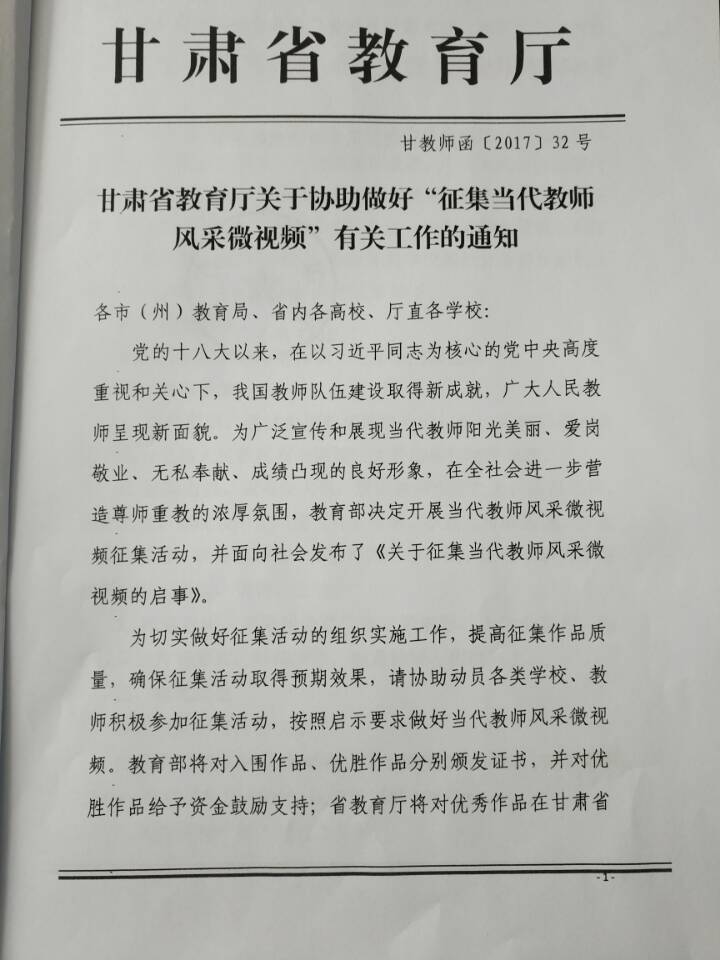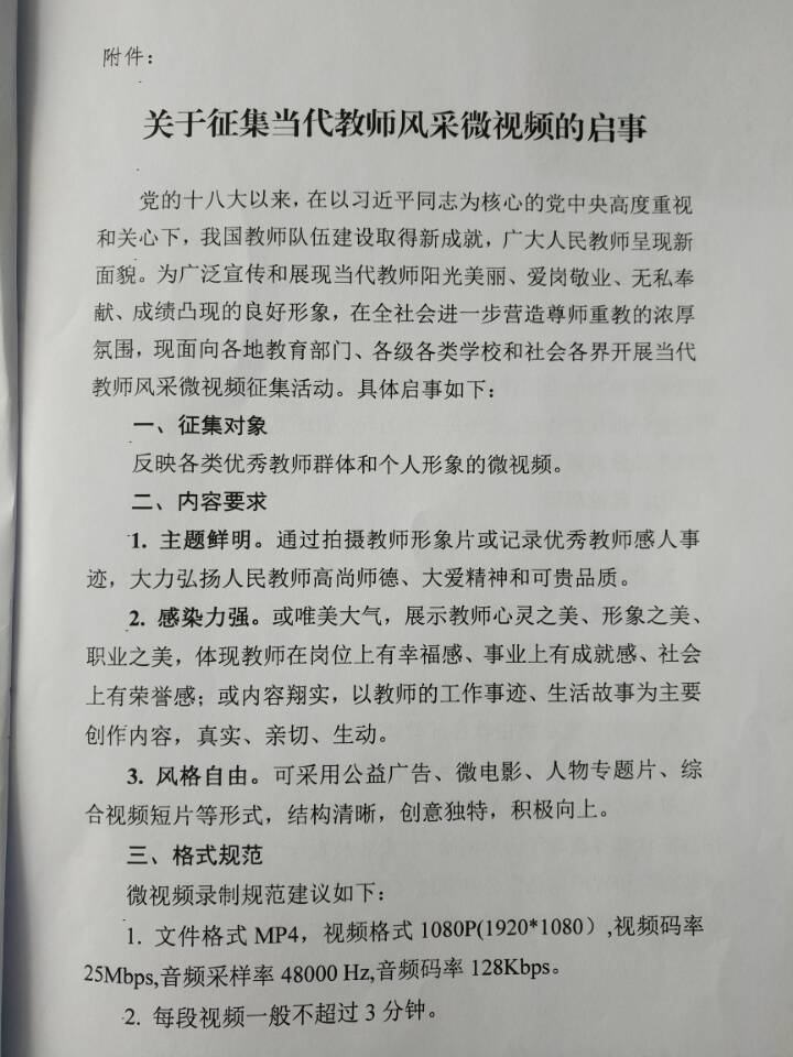 關于做好省教育廳“征集當代教師風采微視頻”有關工作的通知