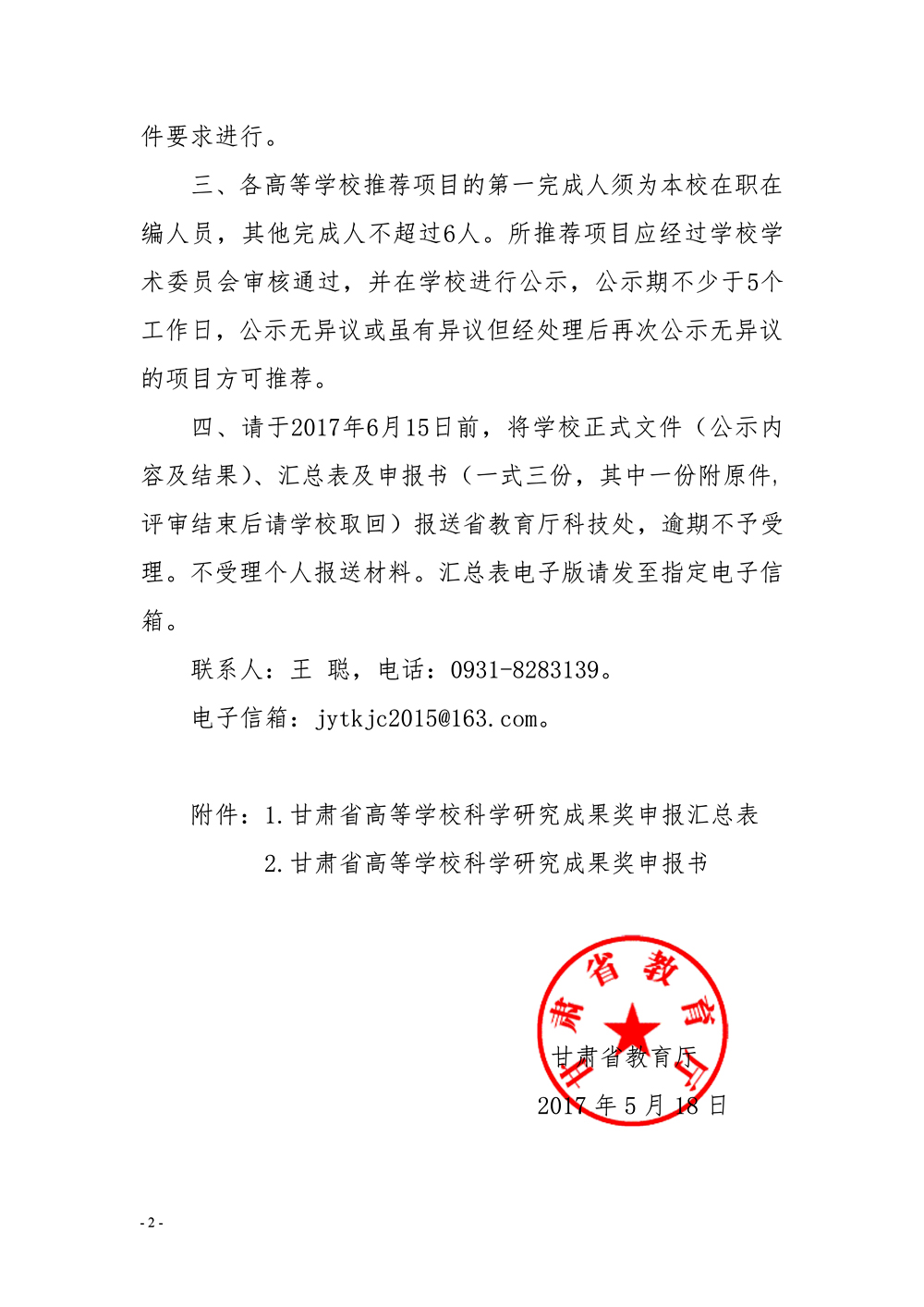轉(zhuǎn)發(fā)甘肅省教育廳關(guān)于申報2017年度高等學校科學研究優(yōu)秀成果獎的通知