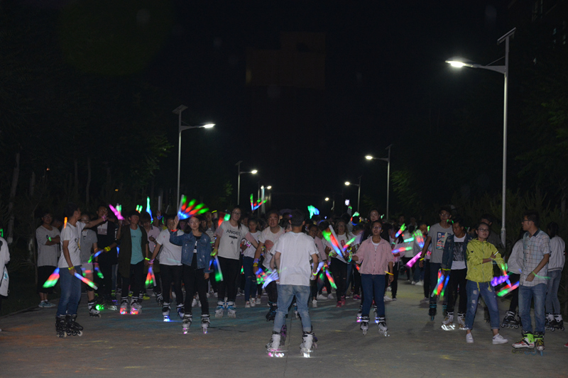 下午三點,學(xué)院團委宋文龍老師在啟動儀式上做了熱情洋溢的致辭,團學(xué)干部帶領(lǐng)參賽選手開啟了本次活動的奔跑。本次活動由“趣味沖關(guān)”“彩虹跑”“熒光夜跑”三個環(huán)節(jié)組成。“趣味沖關(guān)”由一系列小游戲組成,需要大家齊心協(xié)力、互相配合完成,同學(xué)們滿懷激情,在奔跑的同時體驗著合作的趣味與快樂。掌聲、笑聲、加油聲此起彼伏,選手與觀眾互動交流,整個過程充滿了愉悅的氣氛。下午五點開啟了整個活動中最精彩的“彩虹跑”,同學(xué)們手捧玉米粉在慢跑中相互揮灑,多彩的玉米粉在他們身上留下了青春的印記。隨著夜幕降臨,精彩的“熒光夜跑”活動隨之開始,同學(xué)們手帶熒光環(huán),舞動熒光棒,在輪滑社成員的帶領(lǐng)下繞著校園跑動。熒光點綴著夜色,歡快的音樂、青春的聲音充斥著整個校園?;顒咏Y(jié)束后,在學(xué)院東門小廣場舉行了自由晚會,同學(xué)們圍成一圈,在主持人的帶動下做互動小游戲、自由演唱,一陣陣歡聲笑語回蕩在整個校園。