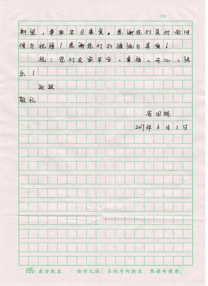 高國棟同學致全院師生的感謝信