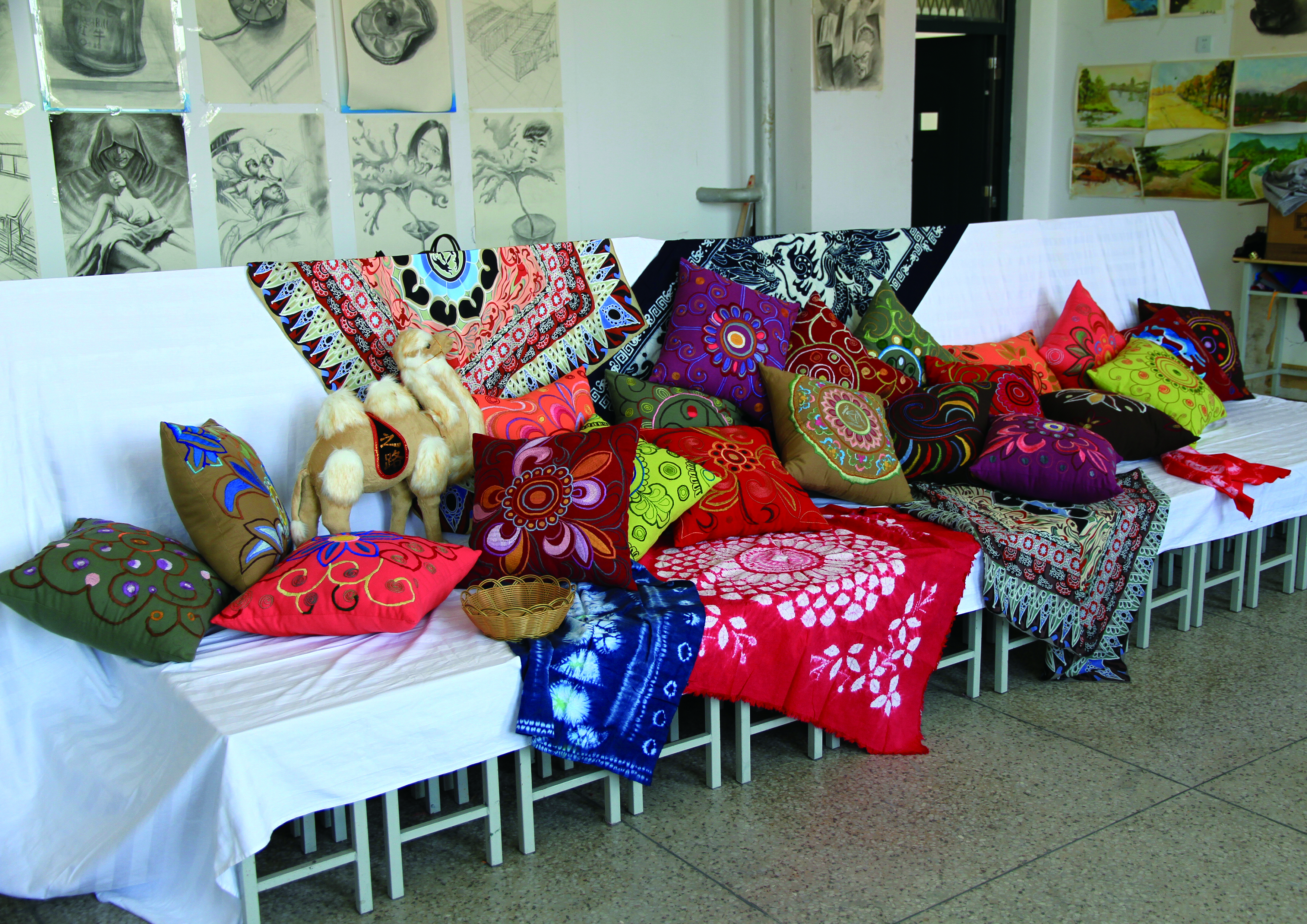 恰逢“一帶一路”偉大戰(zhàn)略構(gòu)想開展之際,近日,為迎接“第二屆敦煌絲綢之路國際文化博覽會(huì)”的勝利召開,人文藝術(shù)教育系組織學(xué)前教育專業(yè)師生積極研發(fā)創(chuàng)意旅游作品,參加由省婦聯(lián)、省教育廳、省高校工委組織的“第一屆女大學(xué)生巧手創(chuàng)意大賽”。學(xué)院人文藝術(shù)教育系利用武威地處絲綢之路經(jīng)濟(jì)帶“咽喉”的區(qū)位優(yōu)勢(shì),挖掘古絲綢之路文化,激發(fā)學(xué)生創(chuàng)新創(chuàng)業(yè)能力,以精美的敦煌壁畫藻井圖案為造型元素,用刺繡的手法設(shè)計(jì)制作裝飾、實(shí)用效果極佳的抱枕等紡織作品,作品傳承了古絲綢之路文化,承載著廣大師生對(duì)敦煌藝術(shù)的向往和追求。參賽作品展現(xiàn)了人文藝術(shù)教育系學(xué)生的精美刺繡工藝和獨(dú)特的創(chuàng)意手法,體現(xiàn)了人文藝術(shù)教育系特色教學(xué)成果。據(jù)悉,參賽優(yōu)秀作品將在“第二屆敦煌絲綢之路國際文化博覽會(huì)”上展出。