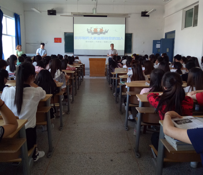 6月22日下午,聯(lián)邦制藥(內(nèi)蒙古)有限公司向即將進(jìn)入實(shí)習(xí)的2015級(jí)學(xué)生做頂崗實(shí)習(xí)宣講。宣講會(huì)上聯(lián)邦制藥李牧青主要就企業(yè)概況、崗位需求、薪酬待遇等方面向同學(xué)們做了介紹,并和部分有意向的同學(xué)現(xiàn)場(chǎng)簽訂實(shí)習(xí)協(xié)議。