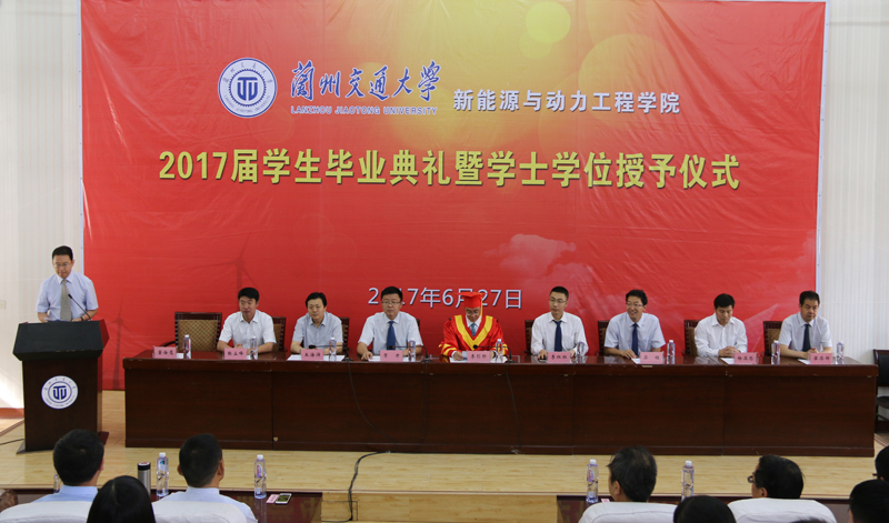 四載辛勤耕耘,一旦收獲碩果。6月27日上午,新能源與動(dòng)力工程學(xué)院2017屆畢業(yè)典禮暨學(xué)位授予儀式在尚德樓正德廳隆重舉行。蘭州交通大學(xué)黨委副書記、常務(wù)副校長李引珍,黨委(校長)辦公室副主任李紅紅、學(xué)生處處長貢力、招生就業(yè)處處長蘇程、教務(wù)處副處長王海涌、財(cái)務(wù)處副處長楊在忠、校團(tuán)委書記張立峰,武威職業(yè)學(xué)院副院長翟存祥,新能源與動(dòng)力工程學(xué)院院長董海鷹、副院長姚翔飛、副院長湯旻安出席了典禮。新能源與動(dòng)力工程學(xué)院256名畢業(yè)生及師生代表共同參加了典禮。典禮由新能源與動(dòng)力工程學(xué)院院長董海鷹主持。