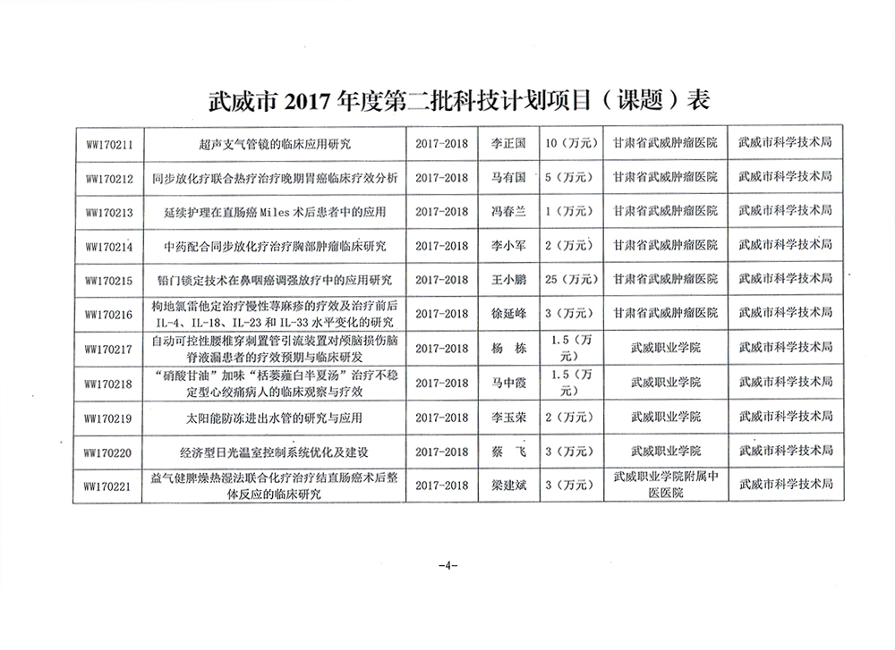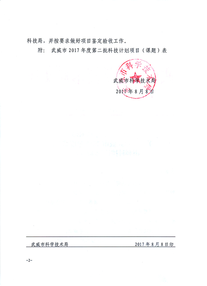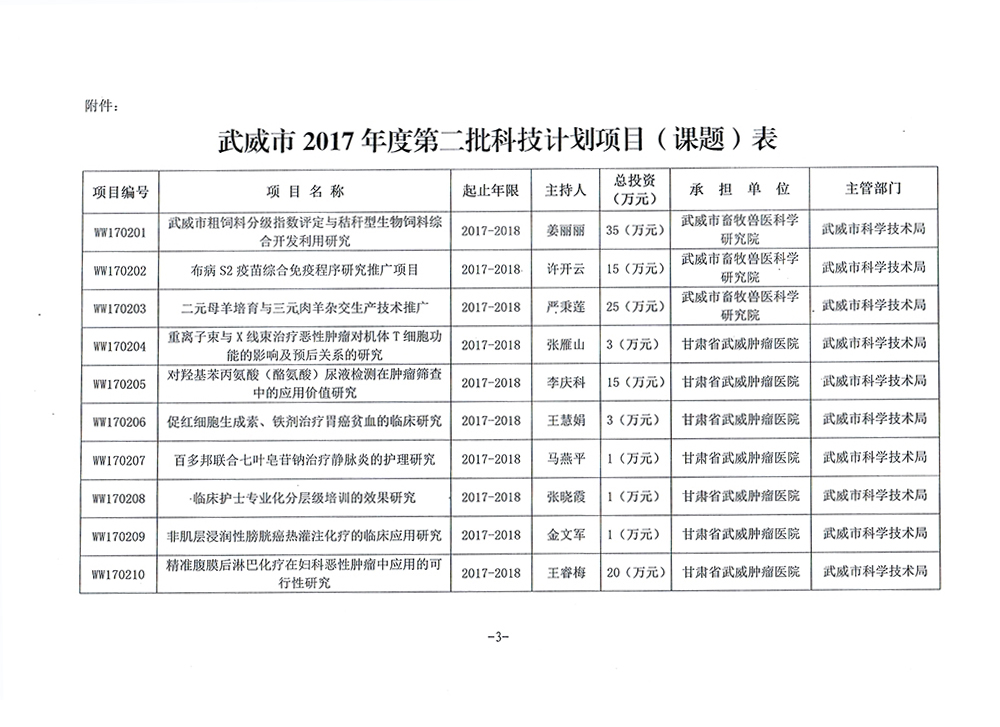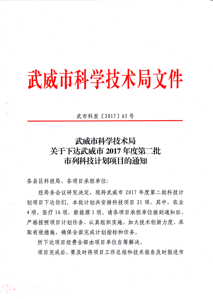 轉(zhuǎn)發(fā)武威市科學(xué)技術(shù)局關(guān)于下達(dá)武威市2017年度第二批市列科技計(jì)劃項(xiàng)目的通知