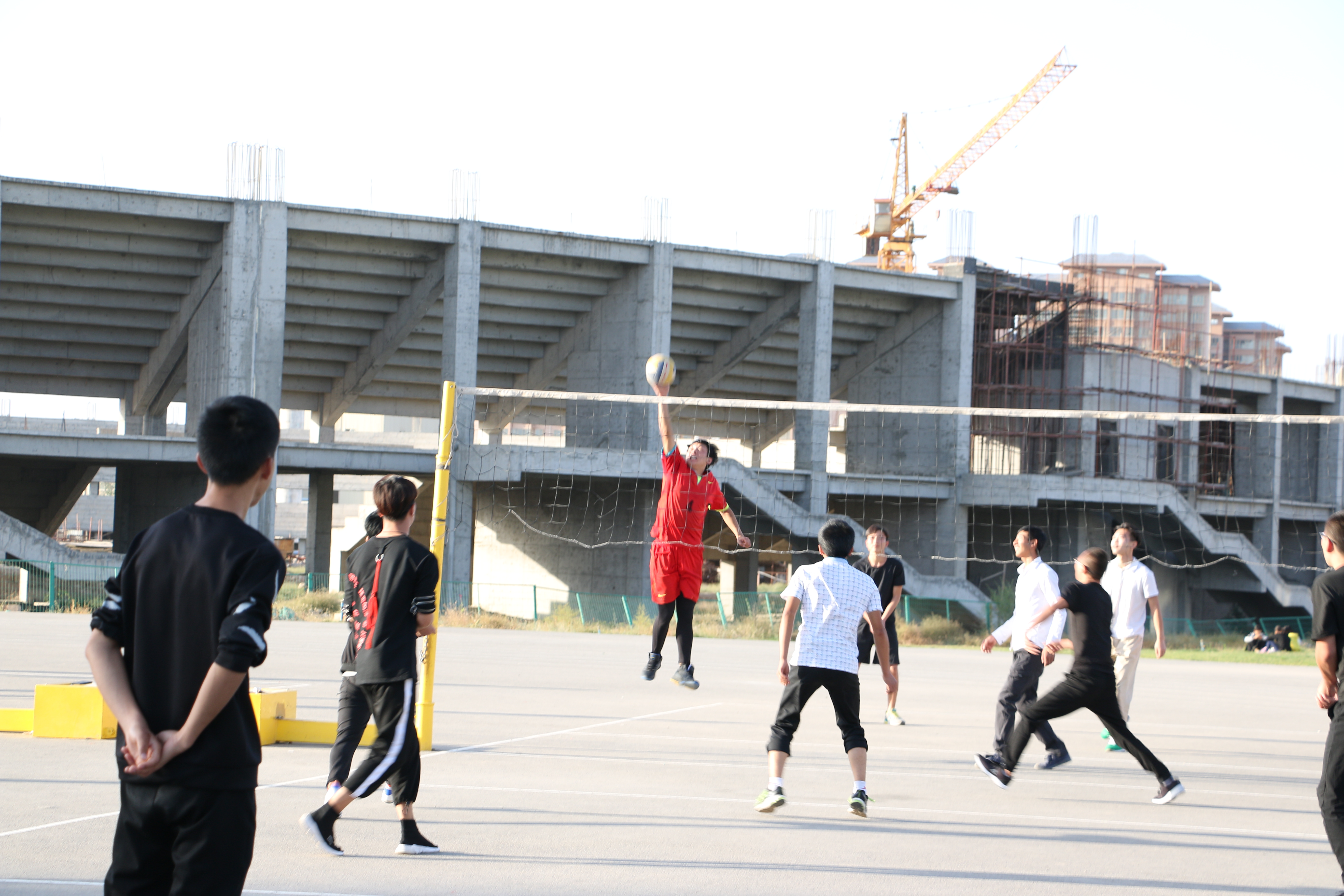 此次比賽有男子籃球、男子排球、女子籃球、女子排球共四各項目。經(jīng)過第一輪的淘汰賽,有八支代表隊晉級。9月25日下午,晉級的八支代表隊分別進行了男子、女子籃球排球賽的冠亞軍爭奪賽。籃球場上,隨著裁判員一聲哨響并將籃球拋向上空,兩方隊員奮力躍起,激烈的賽事正式開始。決戰(zhàn)雙方的隊員斗智斗勇,比分不斷上升,賽事異常激烈,引得全場歡聲雷動。與此同時,排球總決賽也在新排球場上展開。