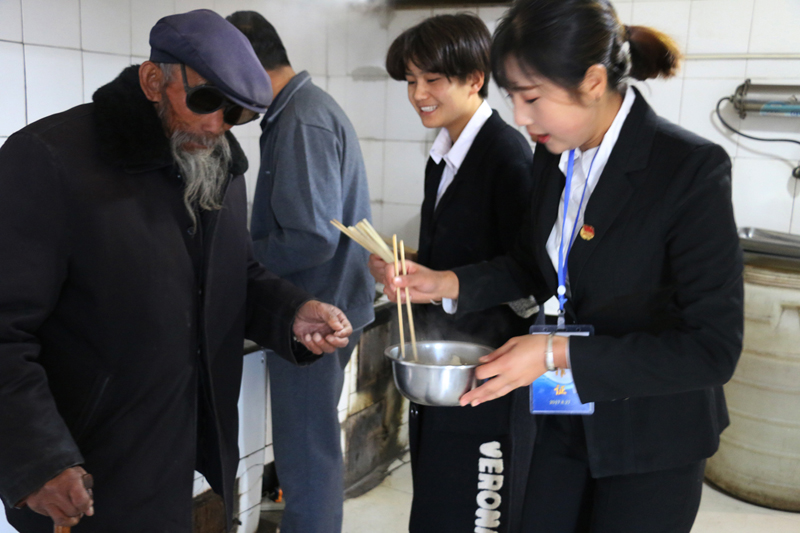 上午八點半,醫(yī)學(xué)技術(shù)與信息管理系各位黨員、入黨積極分子、團(tuán)學(xué)干部、師生代表在廚房為老人包餃子,并整理被褥;康復(fù)治療專業(yè)教師黨員高萬飛為老人講解“如何健康養(yǎng)生”;系團(tuán)總支為老人們送上毛巾、牙膏、香皂等日常生活用品;愛牙協(xié)會的志愿者為老人,進(jìn)行牙齒檢查,講解如何愛護(hù)牙齒;中醫(yī)養(yǎng)生協(xié)會的志愿者為老人們測血壓,演示常用的按摩方法。中午時分,老人們吃著熱氣騰騰的餃子,看著全系師生代表為老人們準(zhǔn)備的精彩節(jié)目,臉上洋溢著幸福的笑容。