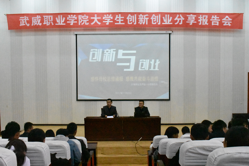 為進一步提升我院大學(xué)生的綜合素質(zhì)和創(chuàng)新、創(chuàng)業(yè)能力,培養(yǎng)大學(xué)生的創(chuàng)業(yè)意識、思維和技能,增強大學(xué)生的專業(yè)信心及創(chuàng)業(yè)信心,以創(chuàng)業(yè)帶動就業(yè),正確引導(dǎo)同學(xué)們以健康積極的心態(tài)開展創(chuàng)新、創(chuàng)業(yè)及就業(yè)活動。2017年11月2日,我院07級優(yōu)秀畢業(yè)生蘆超創(chuàng)業(yè)就業(yè)分享報告會在學(xué)院正德廳隆重舉行。本次大會由創(chuàng)新創(chuàng)業(yè)中心承辦,我院07級畢業(yè)生蘆超,現(xiàn)任甘肅擺渡人文化發(fā)展有限公司總經(jīng)理、武威職業(yè)學(xué)院大學(xué)生創(chuàng)業(yè)導(dǎo)師、共青團創(chuàng)業(yè)宣講團成員、甘肅菜鳥電子商務(wù)有限公司特聘講師,應(yīng)邀出席并做了精彩的報告。全院師生二百多人參加了此次大會,報告會由雙創(chuàng)中心胡建宏老師主持。