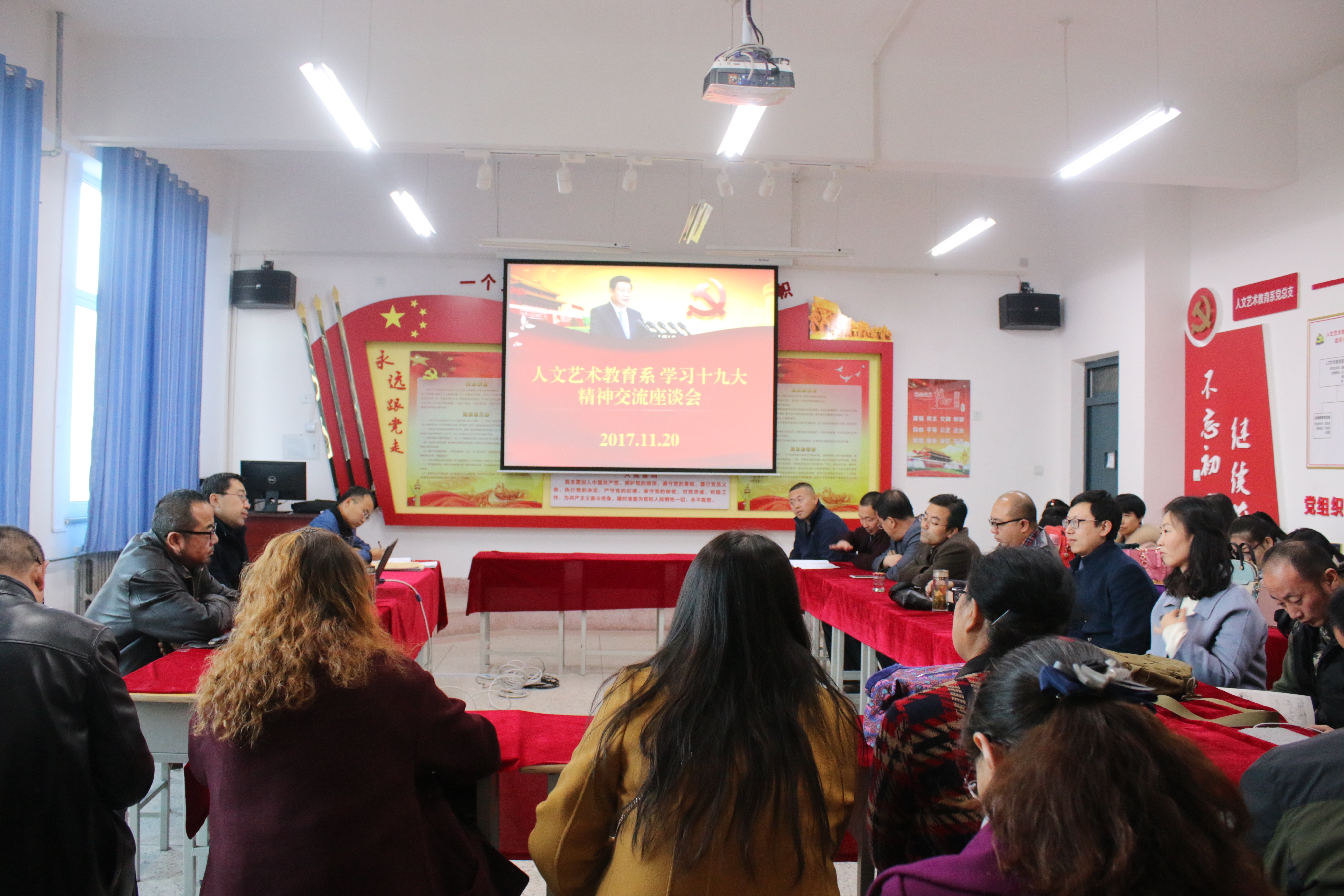 2017 年11月20日,人文藝術(shù)教育系黨總支召開(kāi)了《學(xué)習(xí)黨的十九大精神——促進(jìn)我系教育發(fā)展》專(zhuān)題座談會(huì)。會(huì)議由人文藝術(shù)教育系黨總支書(shū)記胡靜峰同志主持,系全體教師參加座談會(huì)。